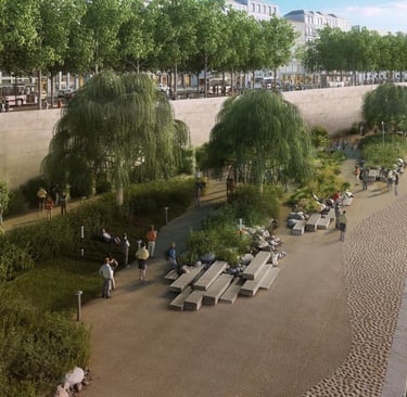 Porté par la Métropole de Lyon en partenariat avec la Ville de Neuville-sur-Saône, le projet des Quais de Neuville vise à étendre le cœur de ville et à réorganiser le partage de l'espace entre les différents modes de transport.